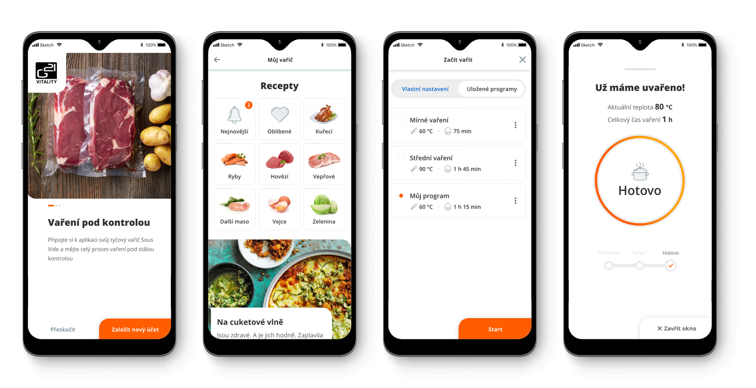Példa: A vákuumozott nyersanyagokat egy fazék vízbe teszi, és munkába vagy kirándulni indul. Útközben kiválaszt egy receptet a mobiltelefonján, és elküldi az utasítást a sous-vide G21 Maestronak az alkalmazáson keresztül. Visszatérve megterítheti az asztalt.