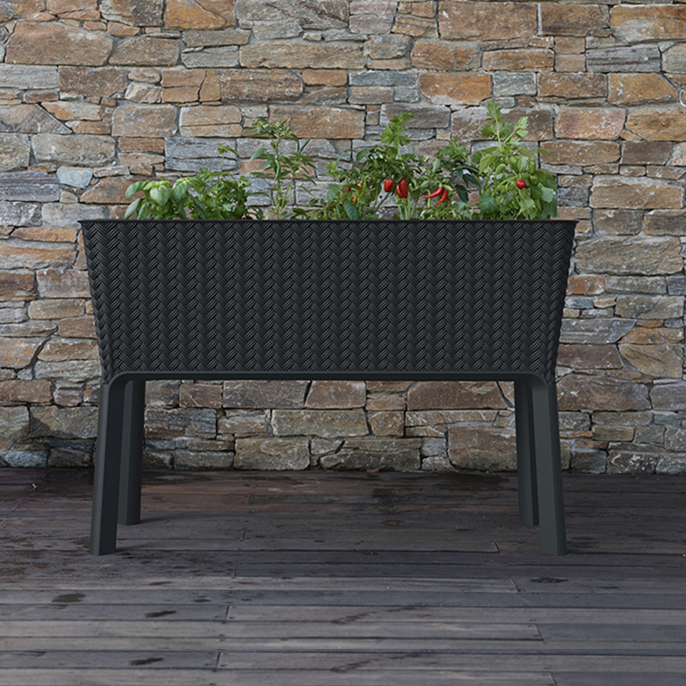 Splendor megemelt műanyag kerti virágláda 120l fonott rattan – antracit szín