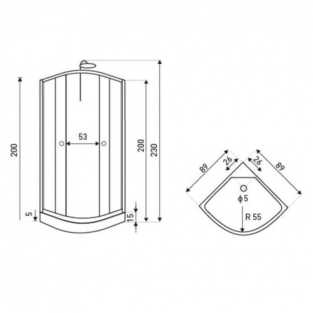 • Zuhanytálca mérete: 89 x 89 x 15 cm