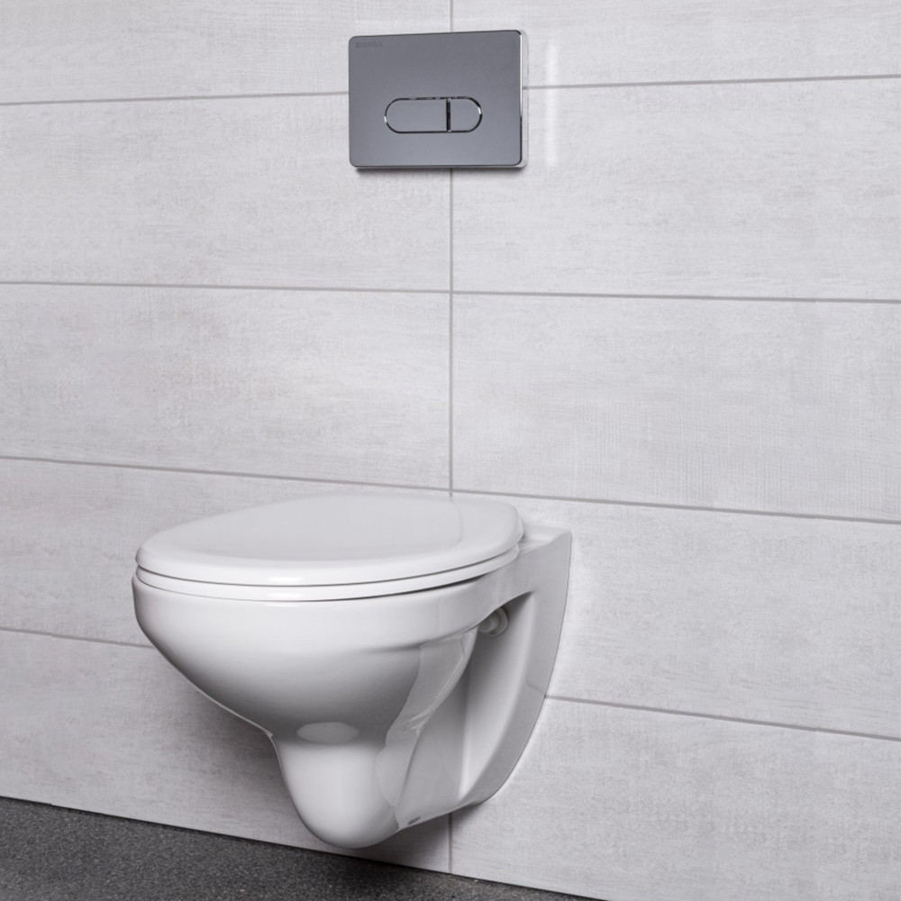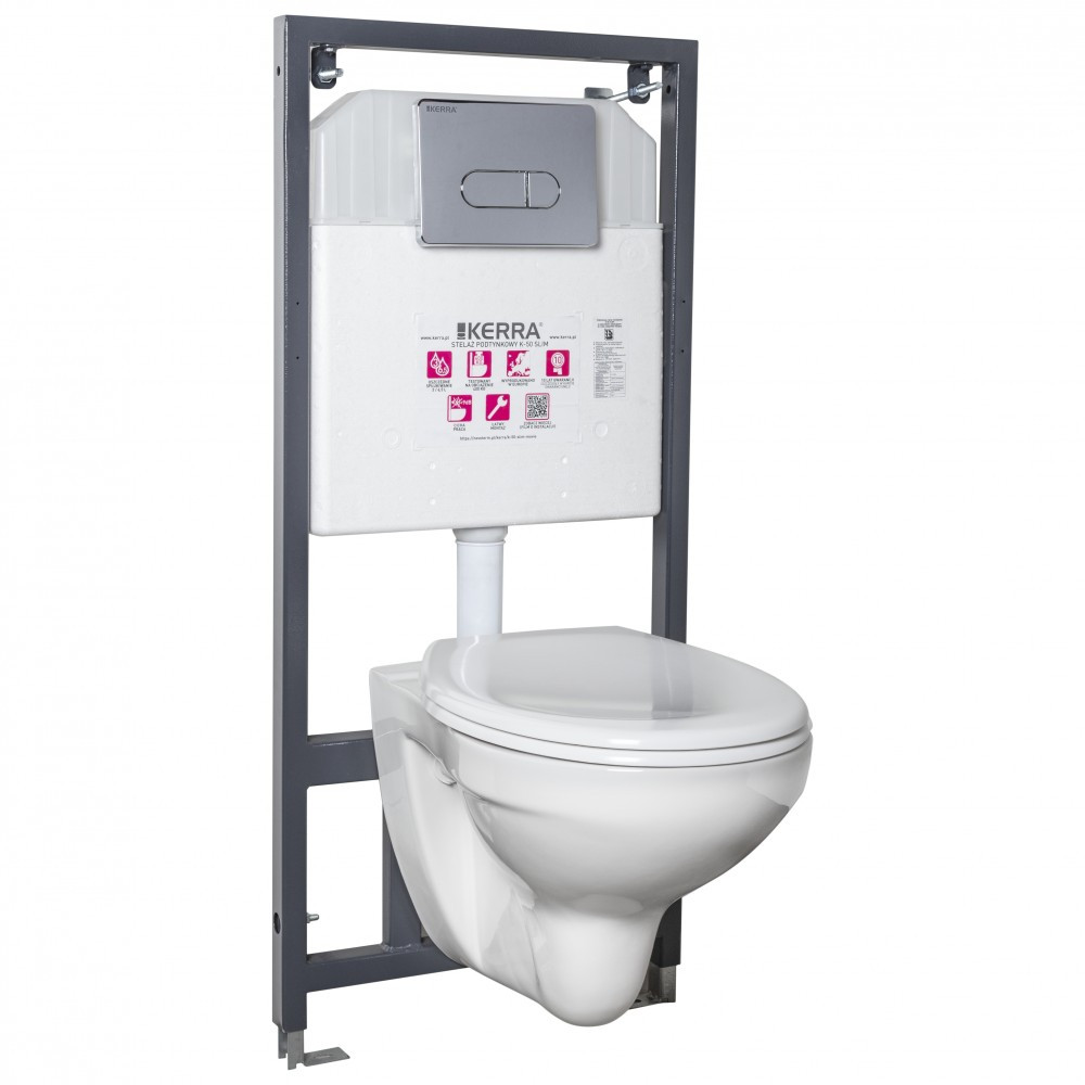 A készlet tartalma: 1 db rejtett rögzítőkeret tartállyal, 1 db Sydney WC-csésze, 1 db Julia wc ülőke (duroplast, soft-close), 1 db dupla nyomógomb (króm)