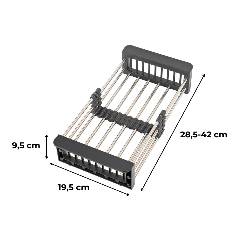 Ez a teleszkópos kosár nemcsak egy egyszerű kiegészítő: igazi mindenes! Legyen szó friss zöldségek mosásáról, edények szárításáról vagy a pult helyének optimalizálásáról, minden helyzetben megállja a helyét. Kompakt mérete lehetővé teszi, hogy mosogatás után könnyedén elhelyezd a szekrényben vagy a pulton.