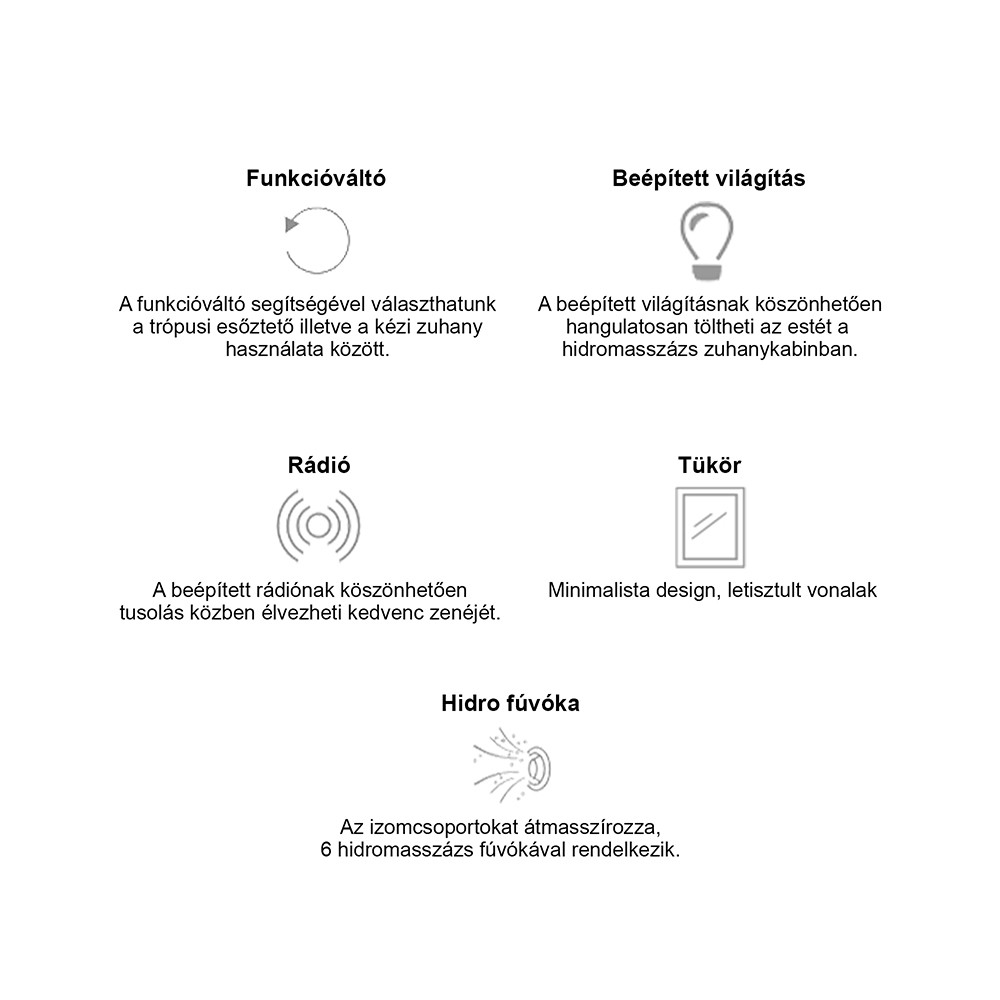 Aria hidromasszázs zuhanykabin balos beépítési oldallal,