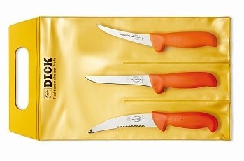 3 az 1-ben készlet, mely ideális vadak erdőben történő zsigereléséhez. A kések rikító színű nyéllel készülnek, ezért terepen könnyen megtalálhatók. Az összeállítás egy 15 cm-es zsigerelő kést, egy 10 cm-es egyenes csontozókést és egy 13 cm-es ívelt csontozókést tartalmaz. A kések, mint az ErgoGrip késcsalád minden tagja, hentesek számára lettek kifejlesztve, ezért otthoni, és professzionális munkahelyi használatra is ideálisak. Mosogatógépben moshatók.