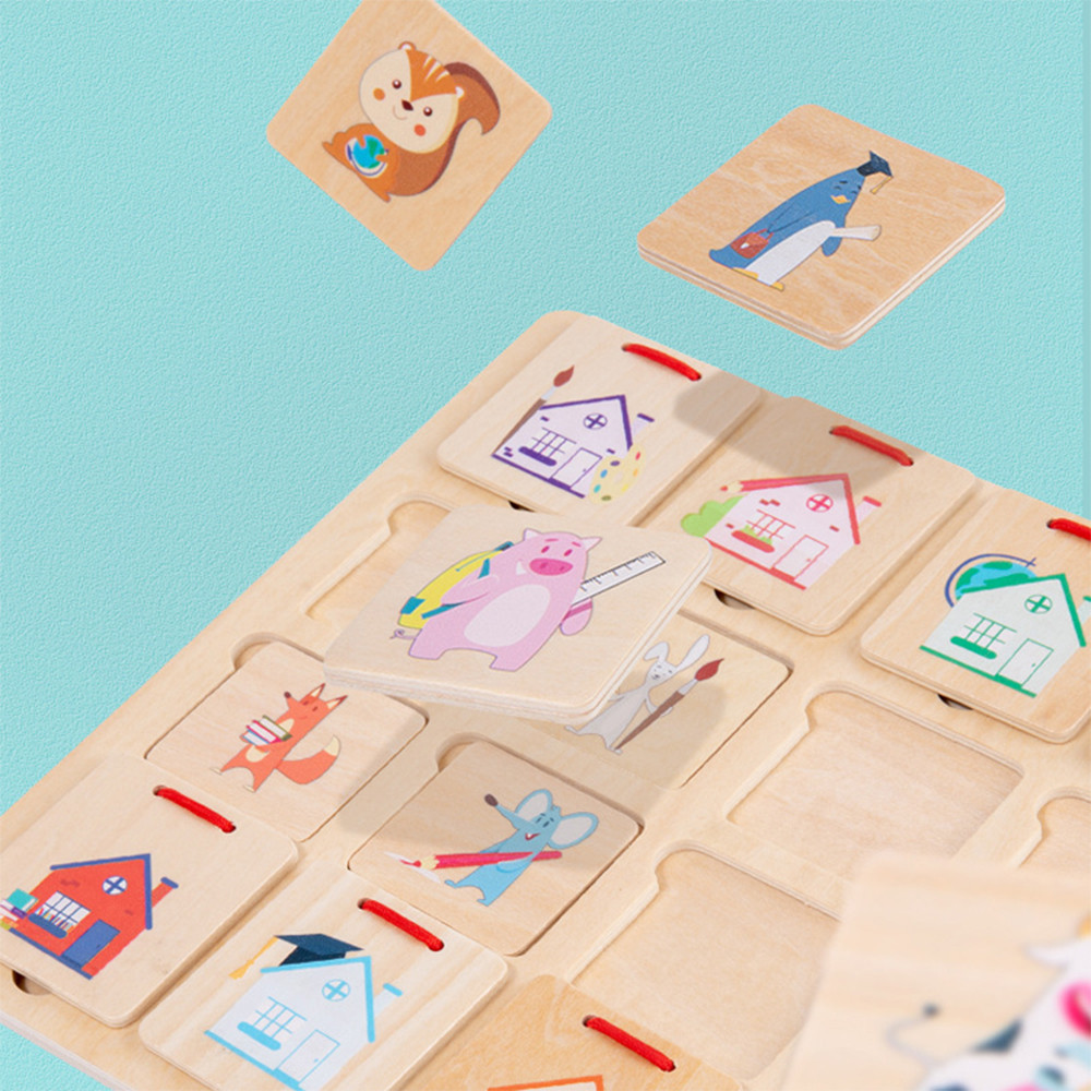 A játék második részében a gyerekeknek meg kell próbálniuk visszatenni az állatkákat az eredeti helyükre, de ezúttal a rájuk jellemző tárgyak segítségével. Ez fejleszti a gyerekek figyelmét, memóriáját és képességüket a párosításra.