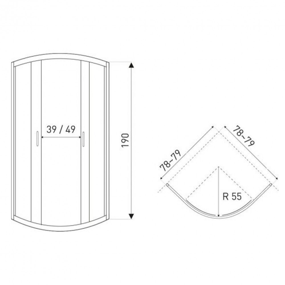 A zuhanykabin 6 mm-es biztonsági üveggel van ellátva. A mérete 79x79x190 cm. A zuhanykabin üvege vízlepergető védőbevonattal van ellátva. Dupla tolóajtókkal rendelkezik.Íves r55-ös akril zuhanytálcával szerelhető. (ALAN vagy ARON modell.) Külön megvásárolható.