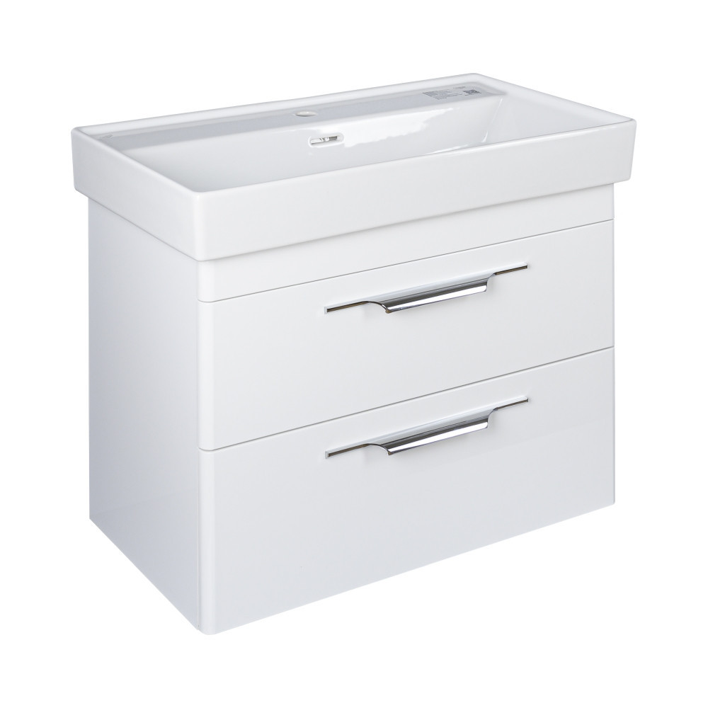 A TMP LUX 80 fürdőszoba bútor kevés helyet foglal viszont rendelkezik két tágas fiókkal ahol kényelmesen elférnek a fürdőszobai eszközök. A termék magasfényű festett fehér színben kapható. A fürdőszoba bútor felfüggesztet kivitelben kapható.