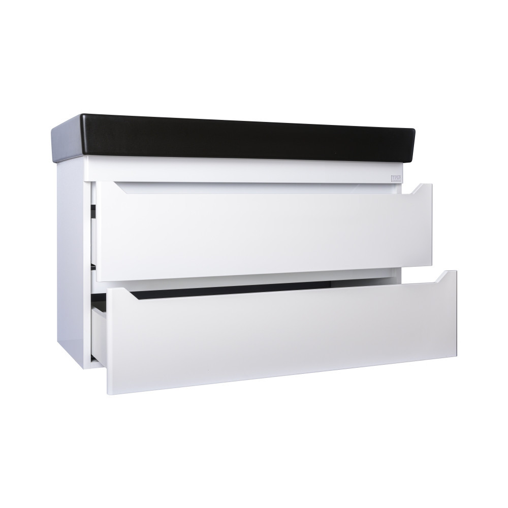 A TMP SHARP 80 fali függesztett fürdőszobabútor kevés helyet foglal viszont rendelkezik két tágas fiókkal ahol kényelmesen elférnek a fürdőszobai eszközök. A termék magasfényű festett fehér színben kapható. A fürdőszoba bútor felfüggesztet kivitelben kapható.