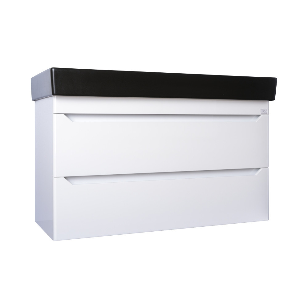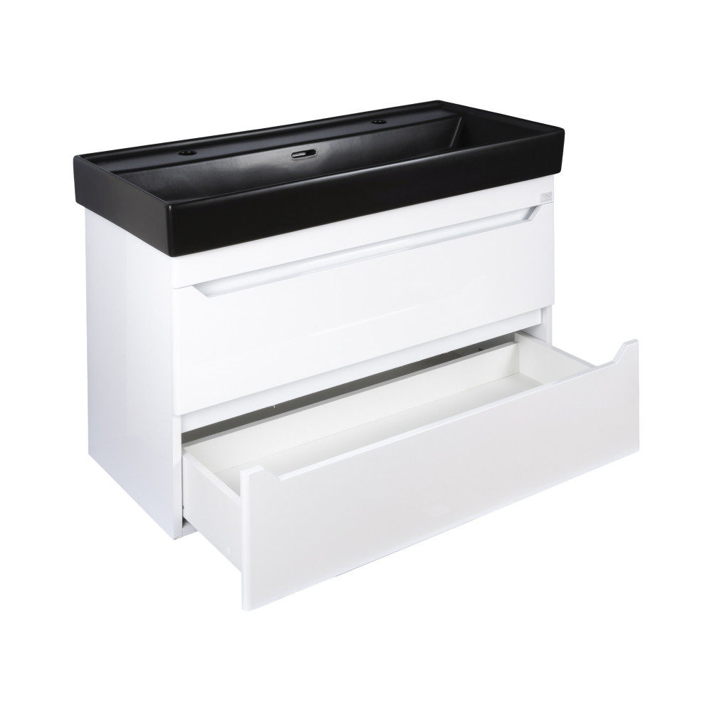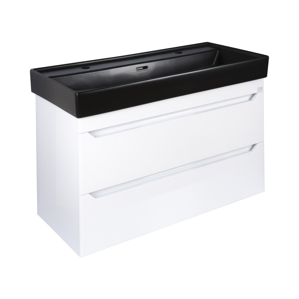 TMP SHARP fali fürdőszobabútor CeraStyle SHARP – FEKETE mosdóval DUPLA csaplyukkal – 100 x 48 cm
