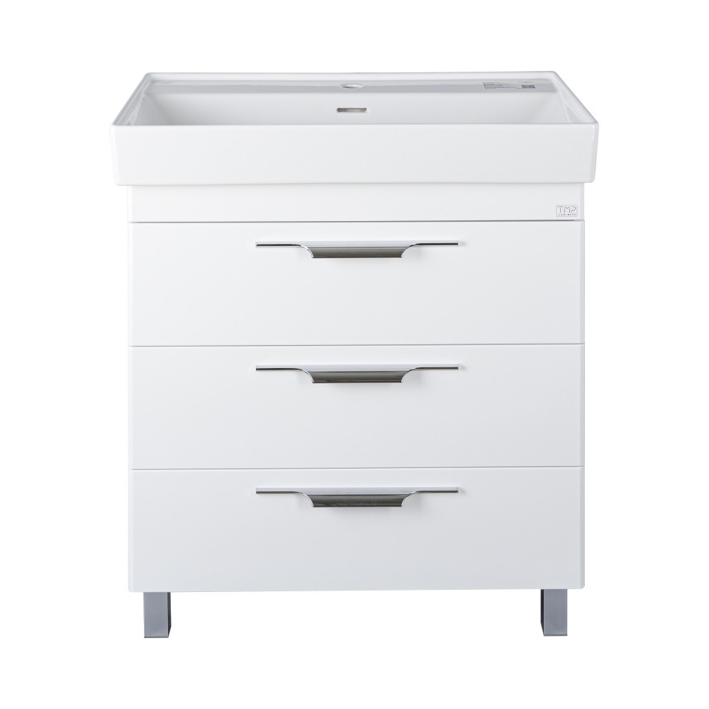 A TMP TRIO 60 álló fürdőszobabútor kevés helyet foglal viszont rendelkezik három tágas fiókkal ahol kényelmesen elférnek a fürdőszobai eszközök. A termék magasfényű festett fehér színben kapható. A csomag részét képzi egy méretben passzoló, magas minőségű CeraStyle Sharp kerámia mosdókagyló is, így ezt nemkell külön beszereznie. A funkcionalitás mellett természetesen a bútor megjelenésére is nagy figyelmet fordítottak. Letisztult modern vonalainak köszönhetően harmóniát teremt az összes fürdőszoba hangulatában.