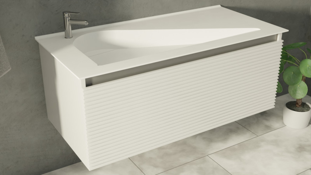 TMP TROYA 100 fali fürdőszobabútor Akrivit öntött márvány mosdókagylóval 100 cm