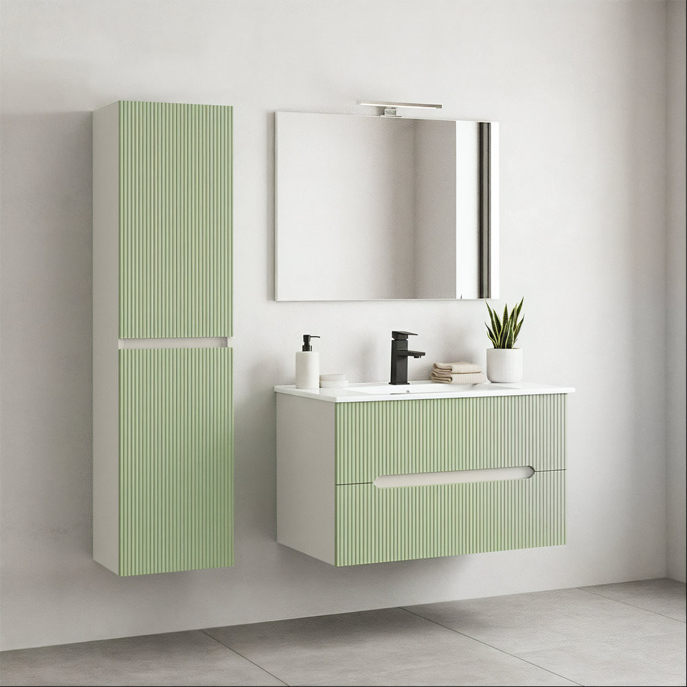 A Leziter Trent függesztett oldal szekrény letisztult, modern megjelenésével tökéletes kiegészítője bármely Trent fürdőszobabútornak – vagy önálló tárolóként is ideális választás. A bordázott frontok harmonikusan illeszkednek a minimalista és skandináv stílusú enteriőrökbe. Praktikus méreteinek köszönhetően kényelmes tárolóhelyet kínál anélkül, hogy értékes padlófelületet foglalna.