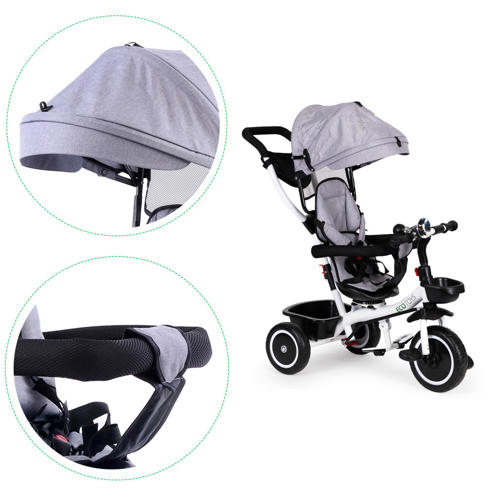 Tricikli háromkerekű forgatható ülés napellenző szürke
