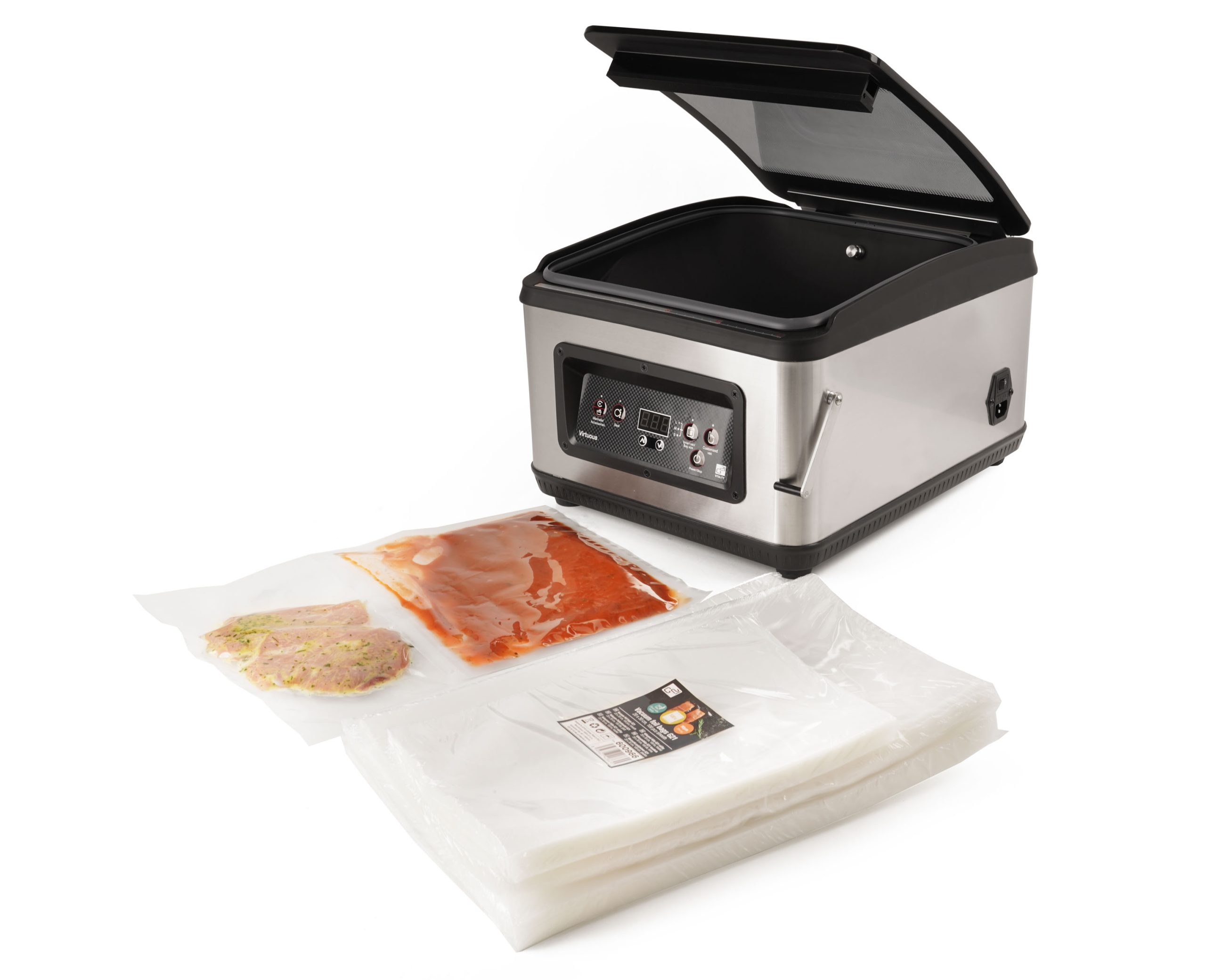 A G21 vákuumtasakok előnye a könnyű használat és az egyszerű kezelés. Kompatibilisek minden típusú kamrás vákuumcsomagoló géppel, beleértve a G21 Virtuous kamrás vákuumcsomagolót is. Helyezze az alapanyagot a tasakba, majd a levegő kiszívása után a vákuumcsomagolóval biztonságosan zárja le a nyílást.