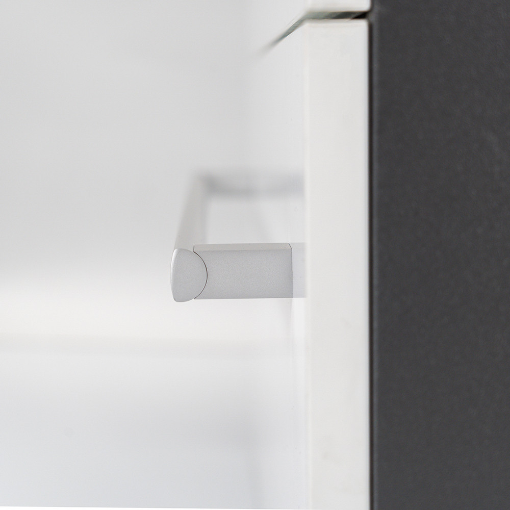 Az antracit korpusz és a fehér front kombinációja elegáns és időtálló megjelenést kölcsönöz a bútornak.