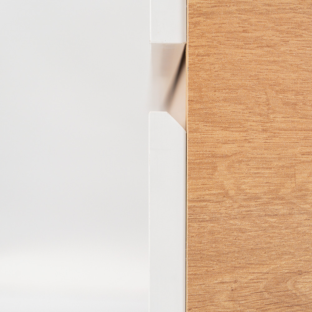 A tölgy korpusz és a fehér front kombinációja elegáns és időtálló megjelenést kölcsönöz a bútornak.
