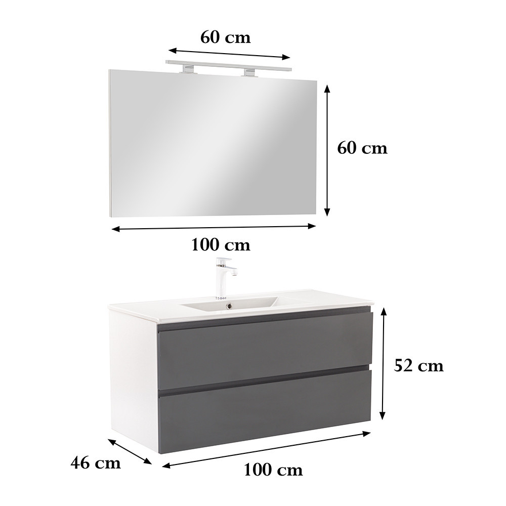 Vario Pull 100 komplett fürdőszoba bútor fehér-antracit – stílusos és modern fürdőszobabútor