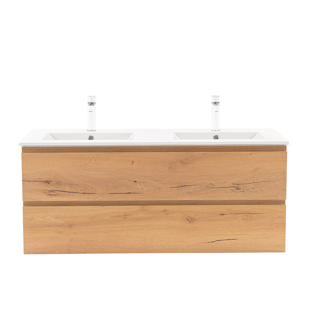Vario Pull 120 fürdőszobai függesztett alsó szekrény mosdóval, fehér-tölgy színben – Vario129