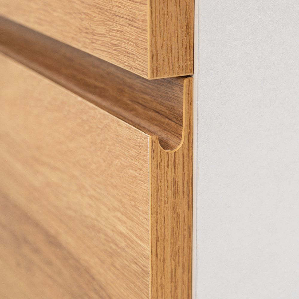 - Kifinomult színvilág: A fehér korpusz és a tölgy front kombinációja elegáns és időtálló megjelenést kölcsönöz a bútornak.