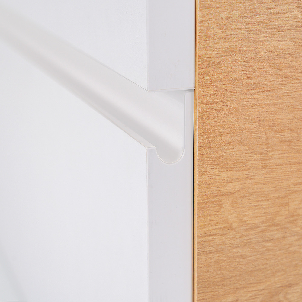- Kifinomult színvilág: A tölgy korpusz és a fehér front kombinációja elegáns és időtálló megjelenést kölcsönöz a bútornak.