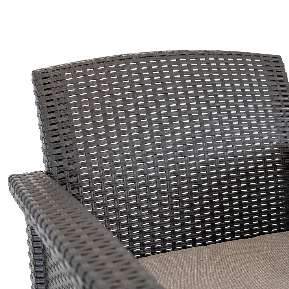 A Venus 2 üléses kerti kanapé visszafogott grafit színben készül. Az ülő párnák néhány árnyalattal világosabbak, ami egyedülálló hatást és elenganciát kölcsönöz.