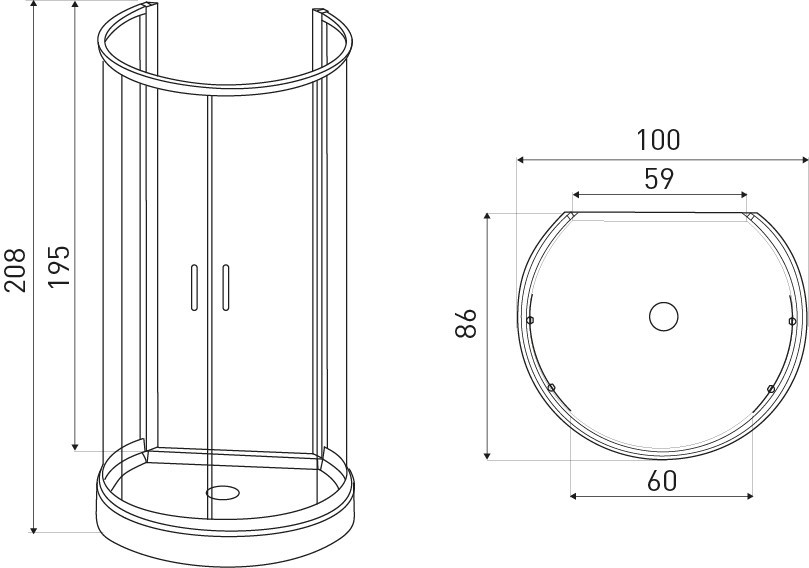 - Mérete: 100 x 86 x 208 cm