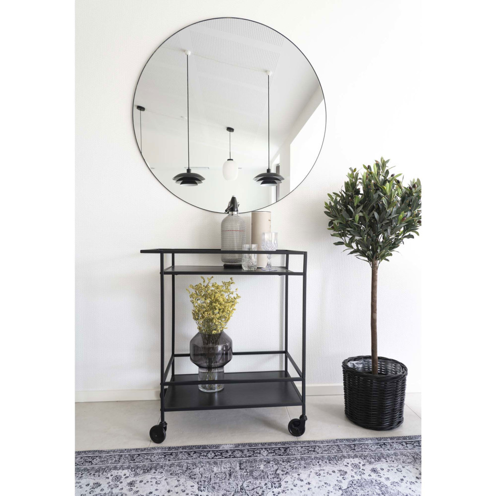 Vita zsúrkocsi, 2 polc, fekete, fekete váz – 68x40x79 cm A fekete színű Vita zsúrkocsi elegáns, karakteres megjelenést képvisel, miközben megtartja a termékcsalád praktikus és letisztult vonásait. Kétpolcos kialakítása és mozgatható szerkezete ideális segítőtárssá teszi kültéren és beltéren egyaránt – legyen szó egy hangulatos grillpartiról, esti borozásról vagy stílusos vendéglátásról. Minimalista stílus, időtlen elegancia A teljesen fekete kivitel modern, kissé ipari hangulatot áraszt, amely jól mutat világos vagy natúr környezetben is. A porszórt acél váz és a polcok színazonos kialakítása harmonikus összhatást biztosít, és kiemeli a letisztult formavilágot. A sötét árnyalatnak köszönhetően kevésbé látszanak meg a használat nyomai, így különösen praktikus intenzív igénybevétel esetén is. Stabil, gördíthető, sokoldalú A két tágas polc kényelmesen elfér rajta minden, amire a vendéglátáshoz szükség van: italok, poharak, harapnivalók vagy akár kerti eszközök. A 4 könnyen mozgatható görgő segít, hogy a zsúrkocsit egyszerűen áthelyezd egyik helyről a másikra – legyen az beltér vagy kültér. Kompakt mérete ellenére nagyfokú mobilitást és hasznos tárolókapacitást kínál. Méretek: Szélesség: 68 cm Mélység: 40 cm Magasság: 79 cm Polcok száma: 2 Szín: fekete váz, fekete polcok Súly: kb. 6,8 kg Kinek ajánljuk? A fekete Vita zsúrkocsi mindazok számára ideális választás, akik szeretik az időtálló, minimalista stílust és megbízható társat keresnek az otthoni kiszolgáláshoz. Legyen szó modern loft lakásról, letisztult teraszról vagy sötétebb tónusú kültéri bútorokkal berendezett kertről – ez a modell biztosan stílusos kiegészítője lesz a térnek. Ajánljuk vendéglátáshoz, szervírozáshoz, de akár dekorációs célokra is.