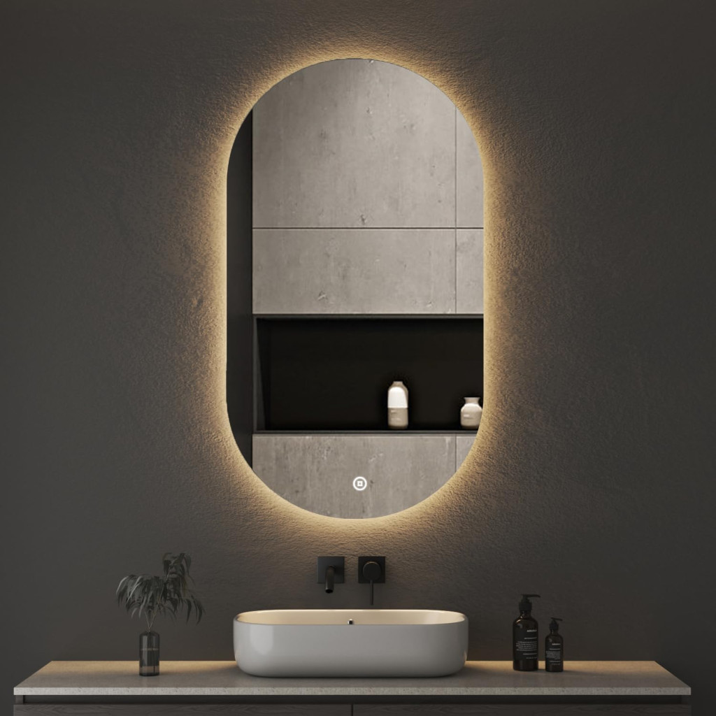 Viva AURA PINO 50 fürdőszoba tükör – érintőkapcsolóval – AMBIENT LED – OVÁLIS – ÁLLÓ – 50×90 cm