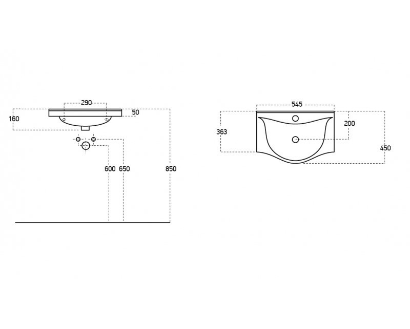 Viva STYLE Bianka 55 lábon álló fürdőszobabútor 2 fiókos Sanovit ALBATROS 10055 mosdókagyló 55×45 cm