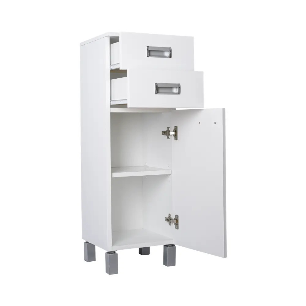 A Szquare állószekrény középmagas polcos praktikus és hasznos megoldást kínál. Felső részén 2 fiók található az alul pedig polccal van ellátva. Fehér színével szinte mindenhová beilleszkedik és esztétikus környezetet teremt. Rendezze be úgy fürdőszobáját, hogy a végeredmény örömet szerezzen a szemnek és szolgáljon sokáig!
