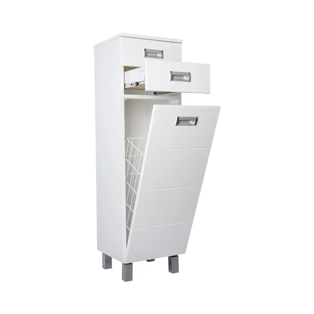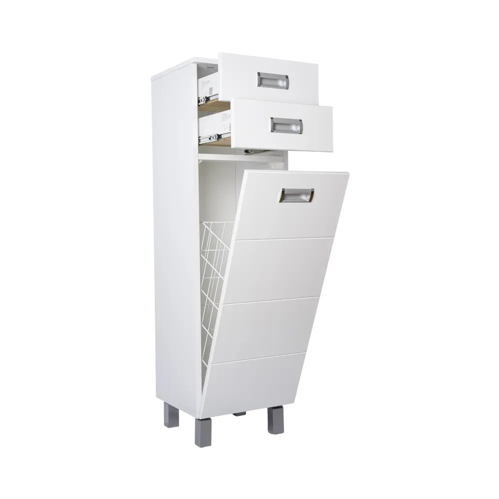 A Szquare állószekrény középmagas szennyestartós praktikus és hasznos megoldást kínál. Felső részén 2 fiók található az alul pedig szennyestartó kosárral van ellátva. Fehér színével szinte mindenhová beilleszkedik és esztétikus környezetet teremt.