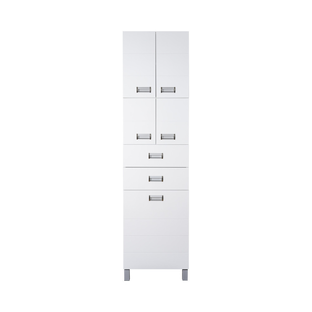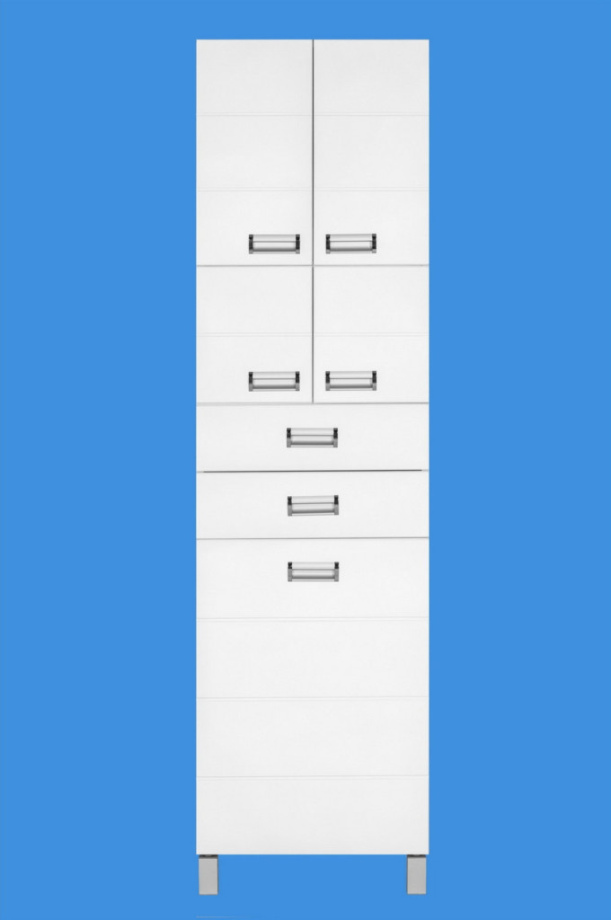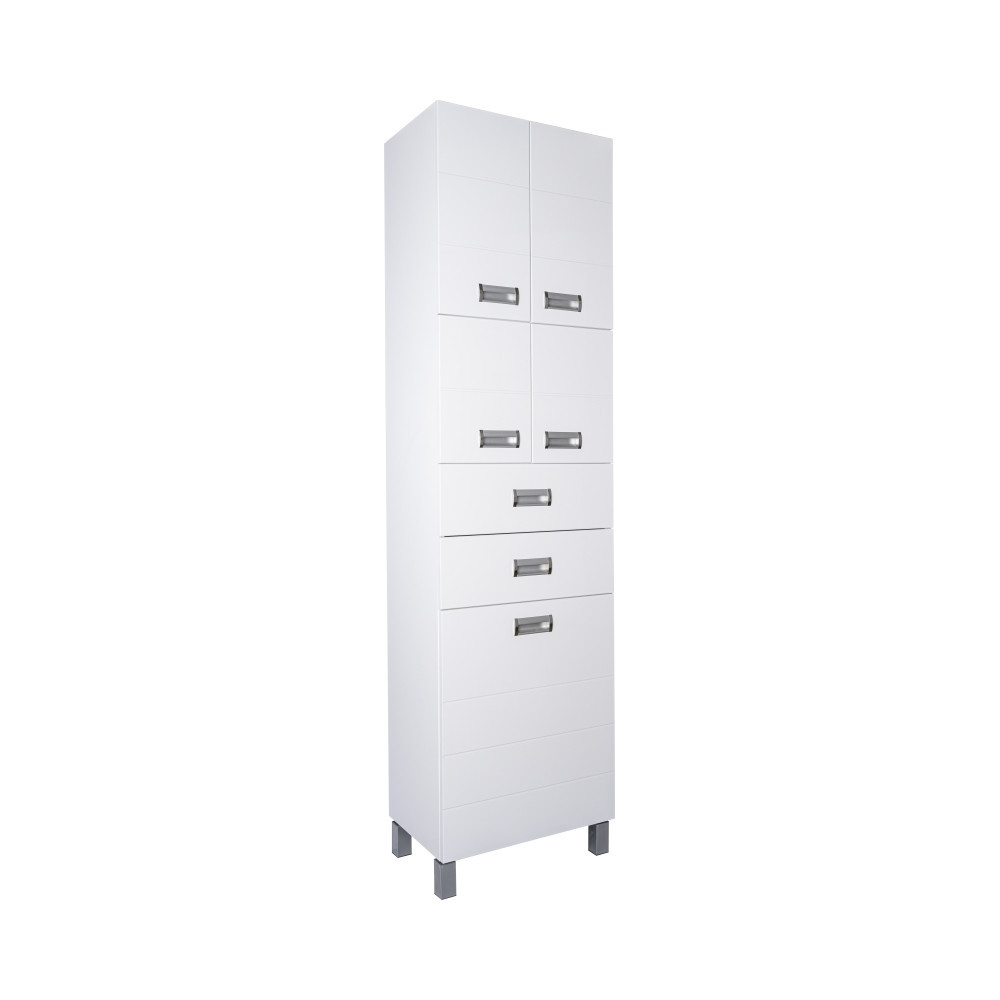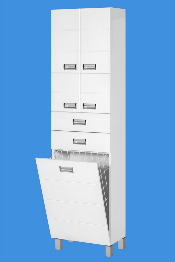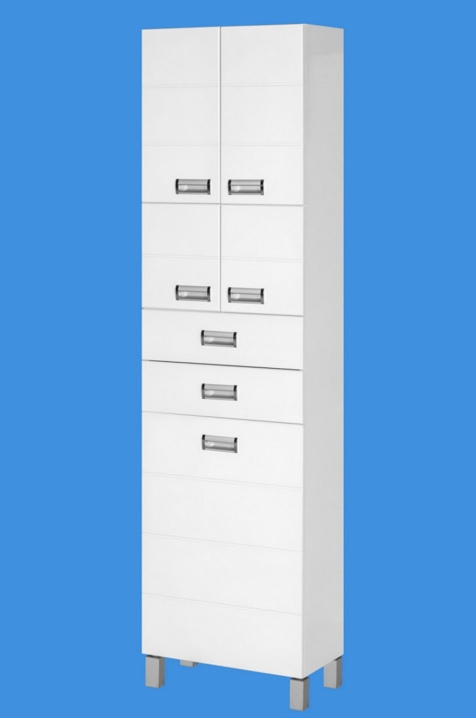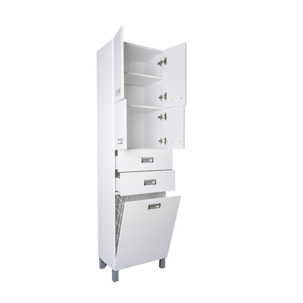 A Szquare állószekrény magas szennyestartós praktikus és hasznos megoldást kínál. Polcaiban tárolhatók a kisebb ruhaneműk, törölközők vagy tisztító és tisztálkodó eszközök és szerek. Ezen felül még 2 fiókkal rendelkezik. A szekrény alsó részében található a szennyestartó kosár. Fehér színével szinte mindenhová beilleszkedik és esztétikus környezetet teremt. Rendezze be úgy fürdőszobáját, hogy a végeredmény örömet szerezzen a szemnek és szolgáljon sokáig!
