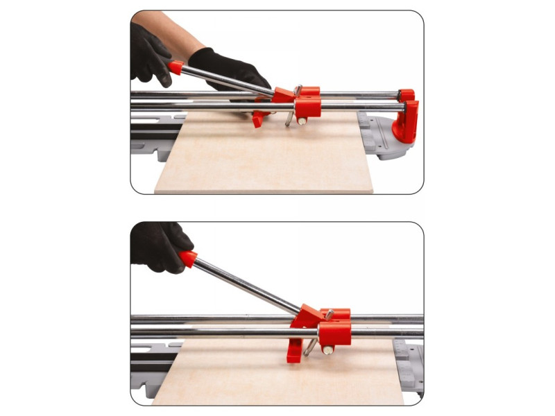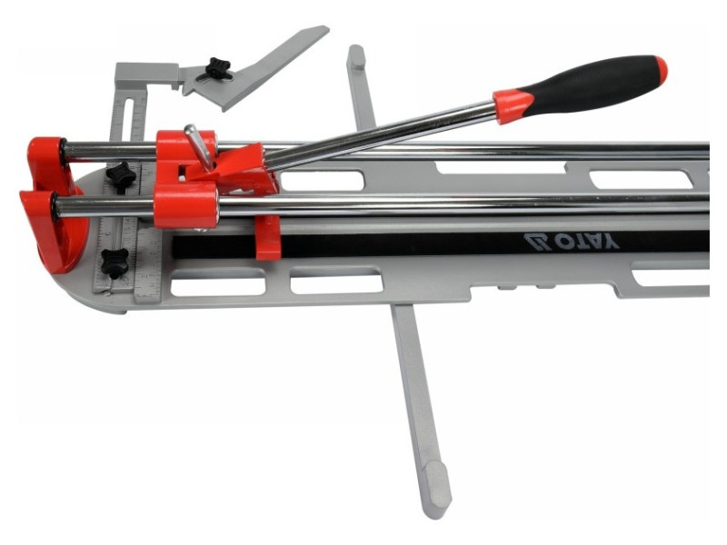 A YATO YT-37036 csempedaraboló egy professzionális eszköz kerámia csempék pontos vágásához és töréséhez. Áll egy stabil alapból, két párhuzamos vezetőből és egy daraboló egységből, amely tartalmaz egy törőt és vágókorongot. Kézműveseknek és igényes barkácsolóknak tervezve. Jellemzők: további 200 mm hosszú, állítható ferde vonalzóval felszerelve, mozgatható karral az alap öntött alumíniumból készült, két mozgatható tartóval csapágyazott daraboló, 15 mm átmérőjű acélkar 8 mm átmérőjű vágókorong, hornyolt tengelyre szerelve 2 szivacs csík, 20 mm széles, az alapon 2-komponensű fogantyú Az alap nyomás alatt öntött alumíniumból készült, két mozgatható tartóval, nagyobb csempék támogatására és fém, mozgatható szögletes konzollal. A csapágyazott darabolóegység stabil acél vezetőkön van felszerelve, amelyek 16 mm átmérőjű csőből készültek. Vágókés-kör fi 8 mm, állandóan felszerelve egy fi 10 x 82 mm-es tengelyre. A munkafelületen két technikai mikrogumi csík van felragasztva, ami megkönnyíti a csempe törését. Acél fi 15 mm darabolókar, amely szintén a kés pozíciójának blokkolását is szolgálja. Használati figyelmeztetések: Figyelem! Munka közben mindig használjon személyes védőfelszerelést.