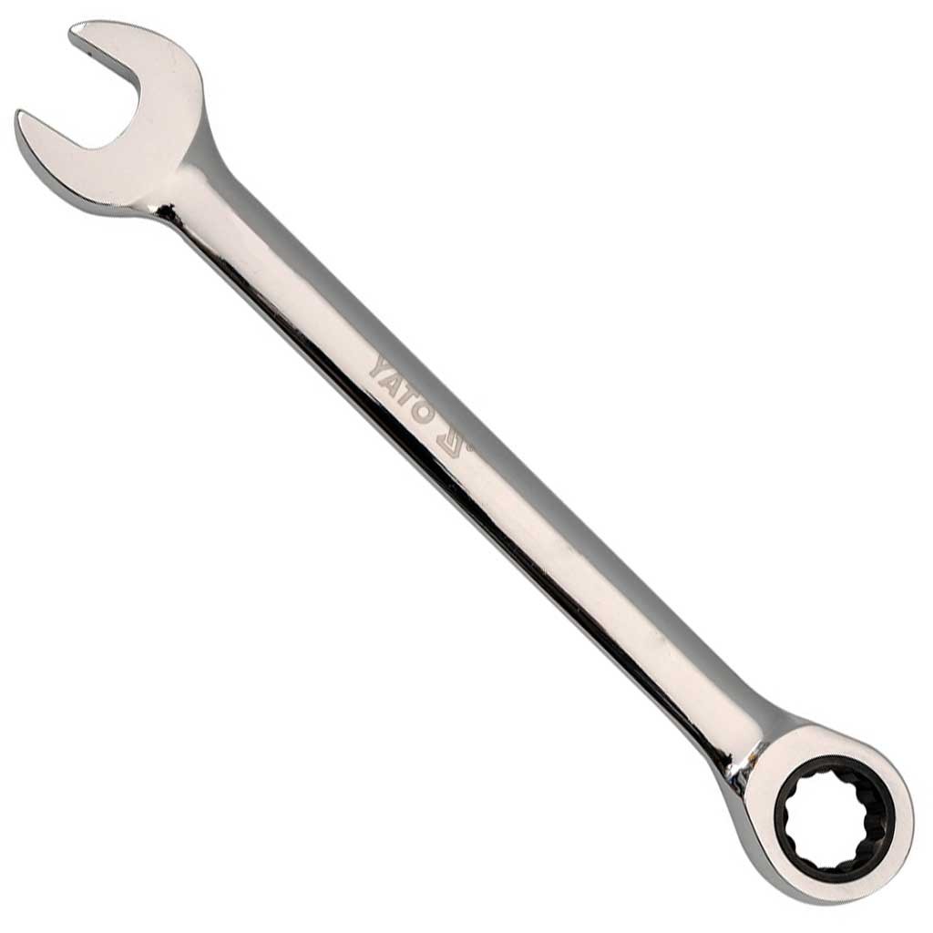 Racsnis kulcs, 15 mm. a kulcs CrV6140 minőségi szerszámacélból készült, és további felületi bevonattal van ellátva: krómozott és polírozott aszerszám 72 fogantyús racsnival van ellátva, melynek szemöcse egy speciális alakú tizenkétszögletű alakzat a jobbra és balra történő fordulások, valamint a 5 fokos minimális munkaszög lehetővé teszi, hogy nehezen hozzáférhető helyeken is lazíthassunk csavarokat, és csökkenti a munkaidőt a kulcsciklusban lévő 2 mozdulat kiküszöbölésével autószerelő műhelyekben és szervizekben való használatra tervezték