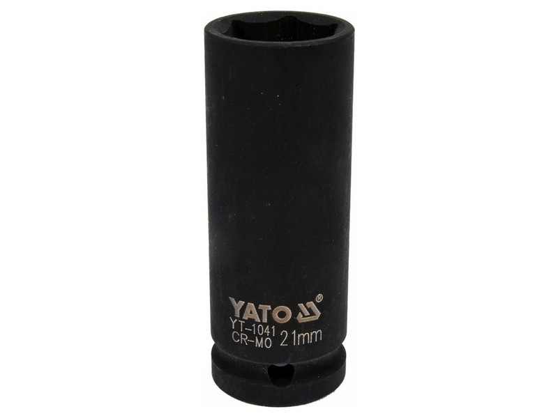 Yato márka 1/2'' 21mm hosszú ütéscsillapító foglalat. a különleges CrMo SCM-440 ötvözött acélból készült, amely kétszer akkora szakítószilárdsággal rendelkezik, mint az átlagos szénacél, és háromszoros a hozamereje az alkalmazott acél köszönhetően a foglalatok nem törnek el az ütéses munka hatására, és hosszabb ideig megőrzik névleges méretüket