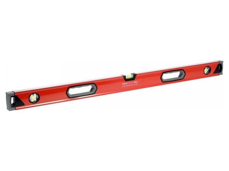 Alumínium szintező 1000 mm, 3 libella, két fogantyú, 0,5 mm/m pontosság Stabil alumínium profilból készült Két precíziósan megmunkált mérőfelülettel Két rugalmas műanyag bevonatú fogantyúval A szintező végén rugalmas műanyag ütközők, amelyek hatékonyan védik a szintezőt az esetleges ütések hatásaitól Az oldalakat porbevonatos festék réteg védi A szintező jelzési pontossága 0,5 mm/m Libellák: 3 akrilüvegből készült libella Láthatóságot növelő, sárga folyadékkal töltve Akrilüveg libellával töltve. Vertikális, horizontális és 45°-os szög jelzése Ütéselnyelő műanyaggal szerelve Elérhető modellek 60, 80, 100 és 120 cm.Professzionális építkezési és felújítási munkákhoz, mosógépek, hűtőszekrények, bútorok stb. pontos pozicionálásához.