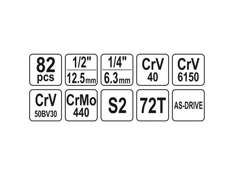 YATO – YT-12691 Dugókulcs készlet 82 részes 1/2 col: 14-24 mm, 1/4 col: 4-14 mm CrV