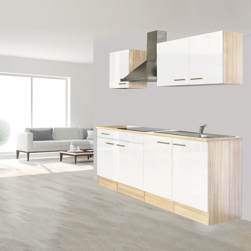 Yorki 210 konyhablokk sonoma tölgy korpusz, selyemfényű fehér fronttal. A tökéletes konyha megteremtője!