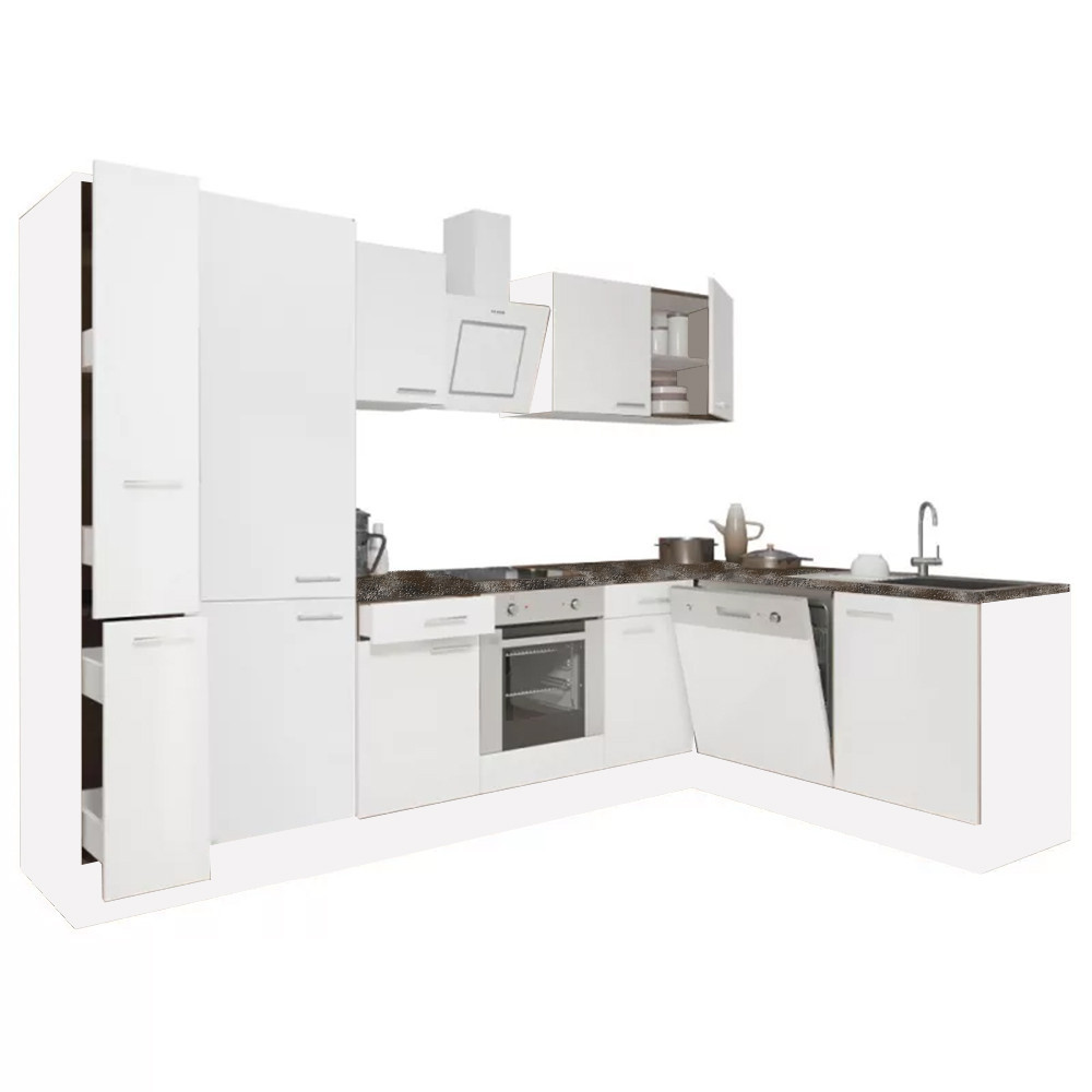 Yorki 310 sarok konyhablokk fehér korpusz, selyemfényű fehér fronttal. A tökéletes konyha megteremtője!