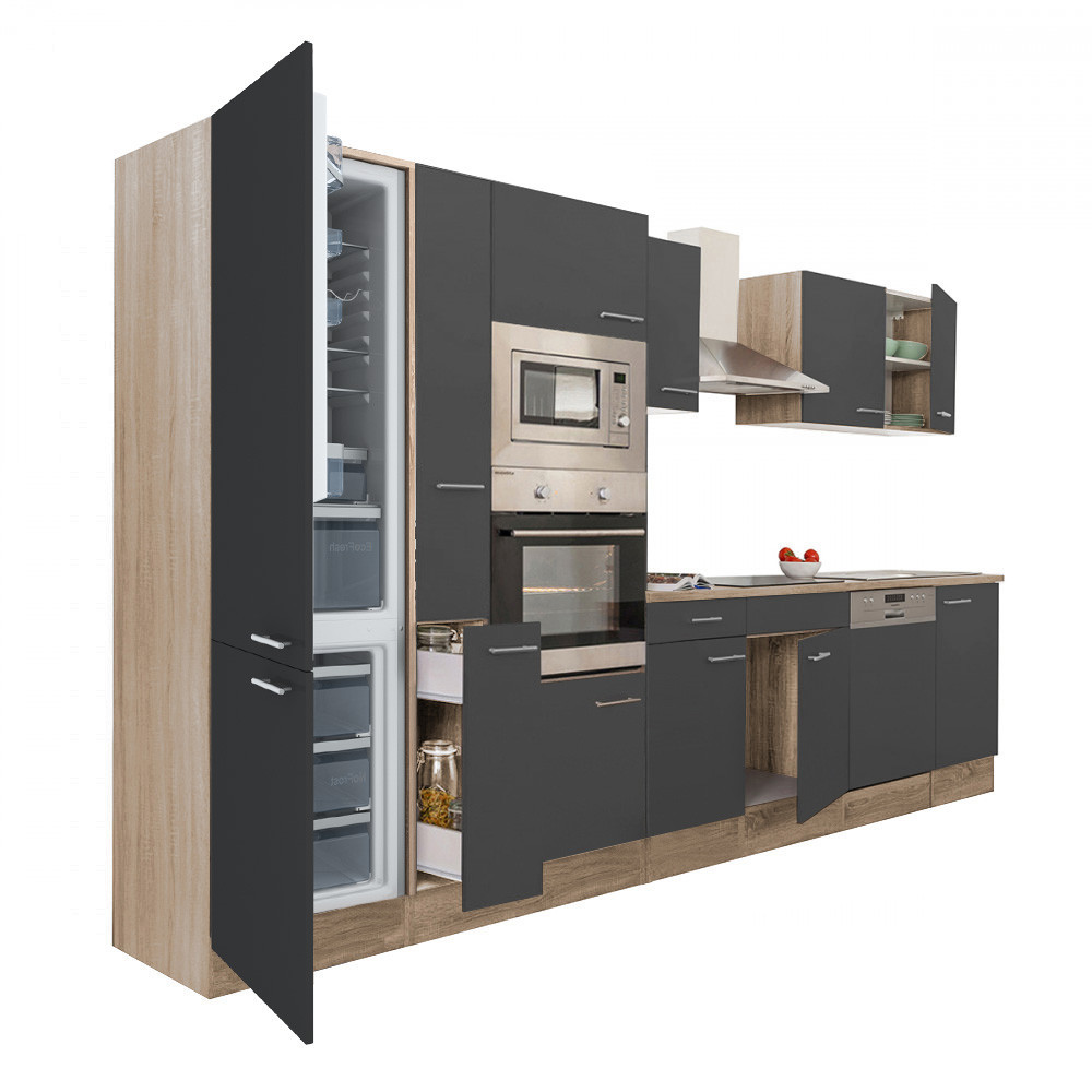 Yorki 370 konyhabútor sonoma tölgy korpusz,selyemfényű antracit fronttal alulfagyasztós hűtős szekrénnyel