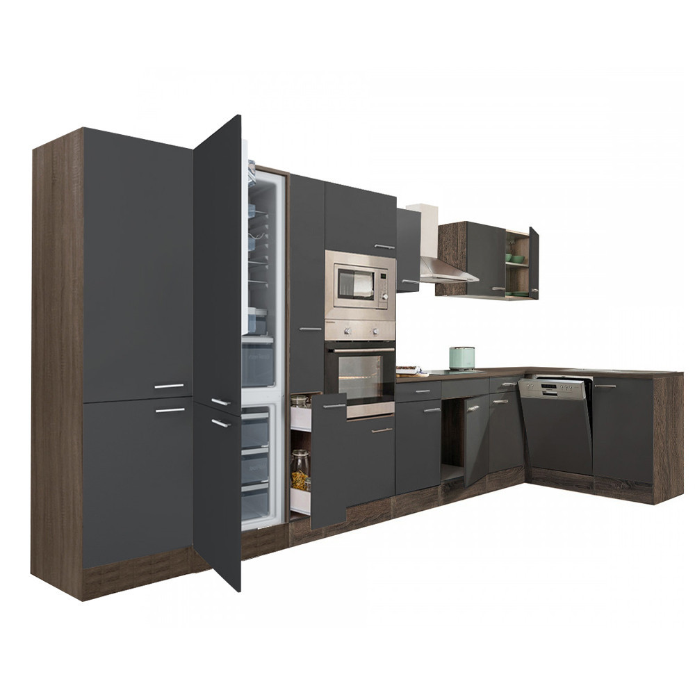 Yorki 430 sarok konyhabútor yorki tölgy korpusz,selyemfényű antracit fronttal alulagyasztós hűtős szekrénnyel